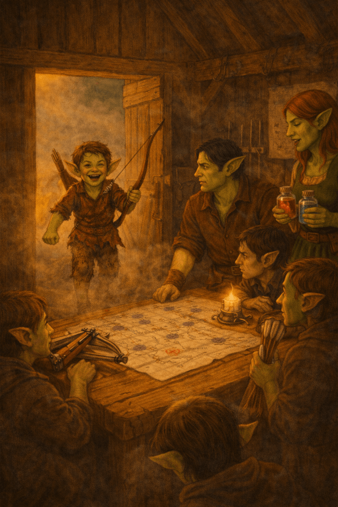 That evening, Pa stood at the fire circle. “Sidelined by work,” he said. “Should’ve handled it better. Sorry, goblins.”